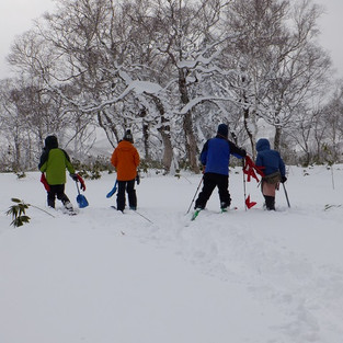 先頭に行くのはスキー組の8人、後ろからスノーシュー組2人が続きます。