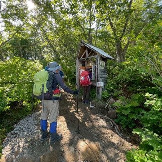 先に到着した真駒内組はラッキーにも駐車場に入れ、10分ほど後に着いた厚別組は駐車場まで登ってきた。 土日って本当に混むんだね。 準備を整え出発! 入山届に記入したよ。